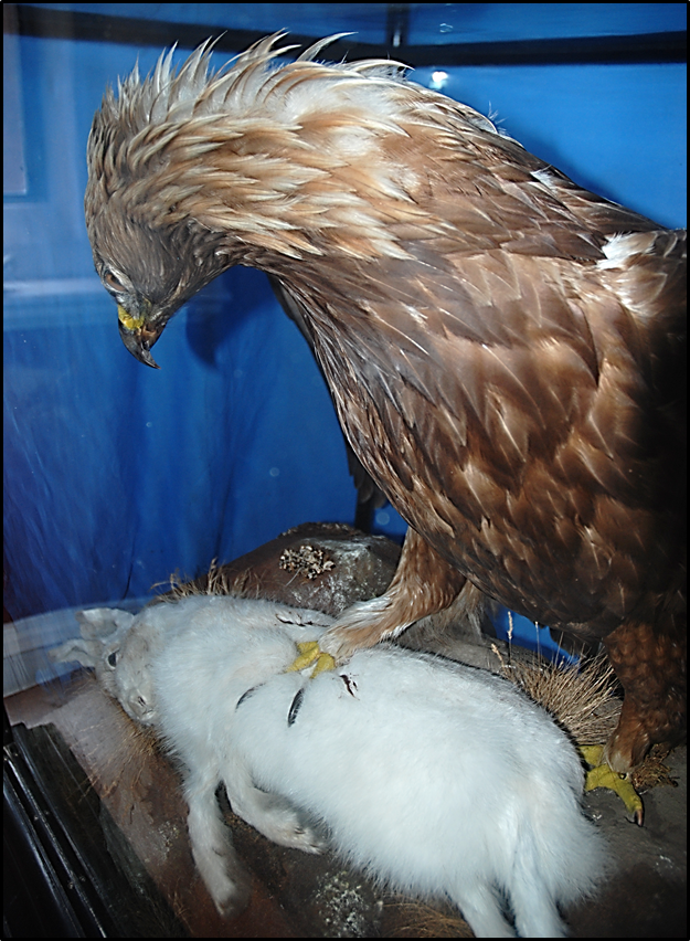 Today an ebonised cased study of a Golden Eagle with its prey, a hare in winter coat,