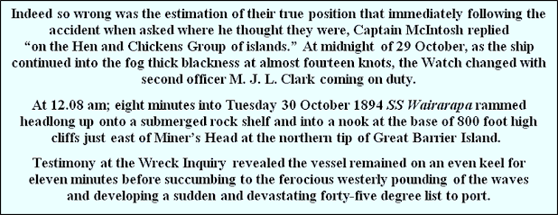 Wreck report for SS Wairarapa - 21 January 1895