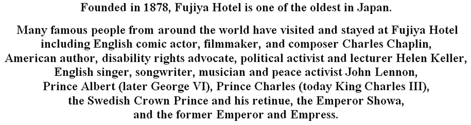 From 1893 to 1912, by agreement with other Mtyanoshita hotels the Fujiya