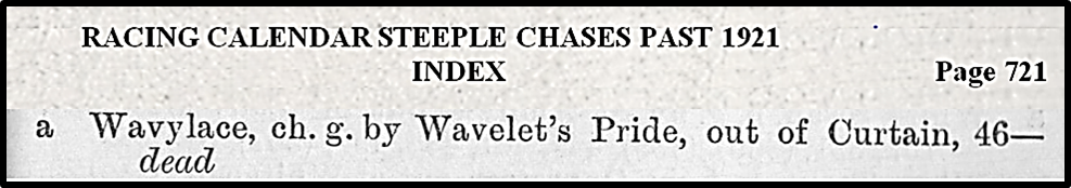 Wavylace seventh race in ownership Sir George Bullough.Wavylace eighth race in ownership Sir George Bullough.Wavylace ninth race in ownership Sir George Bullough.